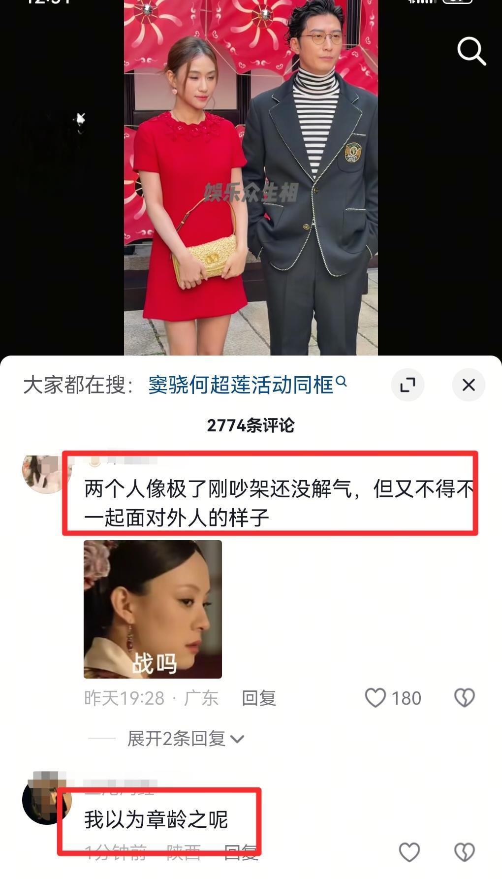 多才多艺的网友们也特别会来事,特别是看了窦骁何超莲两人的互动和表情之后,纷纷在评论区里发表了自己的看法,真的是像戏精一样,好有给窦骁何超莲加戏的感觉又幽默又搞笑的。